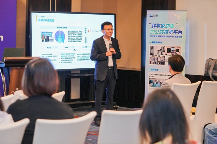 論壇中,北化生科黨總支書記、總經(jīng)理申海成從專業(yè)運(yùn)營空間、專業(yè)運(yùn)營團(tuán)隊(duì)和專項(xiàng)產(chǎn)業(yè)基金等多個(gè)方面,深度聚焦以核酸藥物為代表的五大細(xì)分賽道,向與會(huì)者詮釋“國際生物島”獨(dú)有的“1公里科學(xué)家鄰里”生態(tài),并通過高標(biāo)準(zhǔn)技術(shù)平臺(tái)、專項(xiàng)基金、技術(shù)審評(píng)、專屬空間、高科技人才和公共服務(wù)六大生態(tài)要素協(xié)同,系統(tǒng)闡釋從“0-1-N”的產(chǎn)業(yè)化路徑。